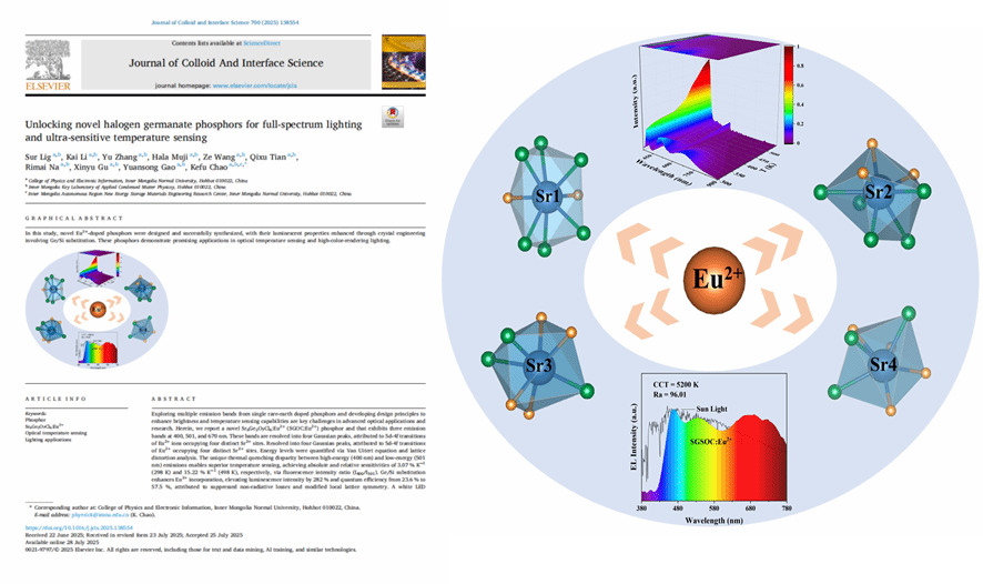 近日,我校物理与电子信息学院朝克夫教授团队在稀土发光与功能材料领域取得两项重要突破成果,相关研究成果分别发表于国际权威学术期刊 Laser & Photonics Reviews 和 Journal of Colloid and Interface Science。该系列研究为全光谱健康照明、高灵敏温度传感及可穿戴应力发光技术提供了全新材料体系与应用方案,对绿色能源、智能传感及生物医学工程领域的发展具有重要意义。